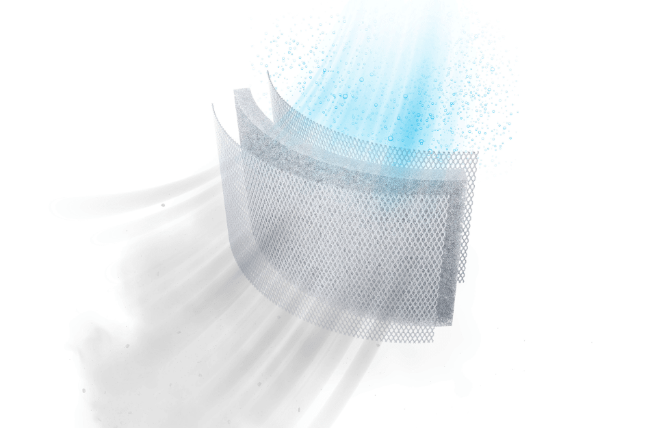 Увлажняет и очищает воздух в помещении, задерживая крупные частицы и пыль.