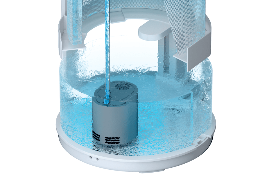 Увлажнение фильтра происходит при помощи водяной помпы, обеспечивая равномерное смачивание поверхности для стабильной работы прибора.