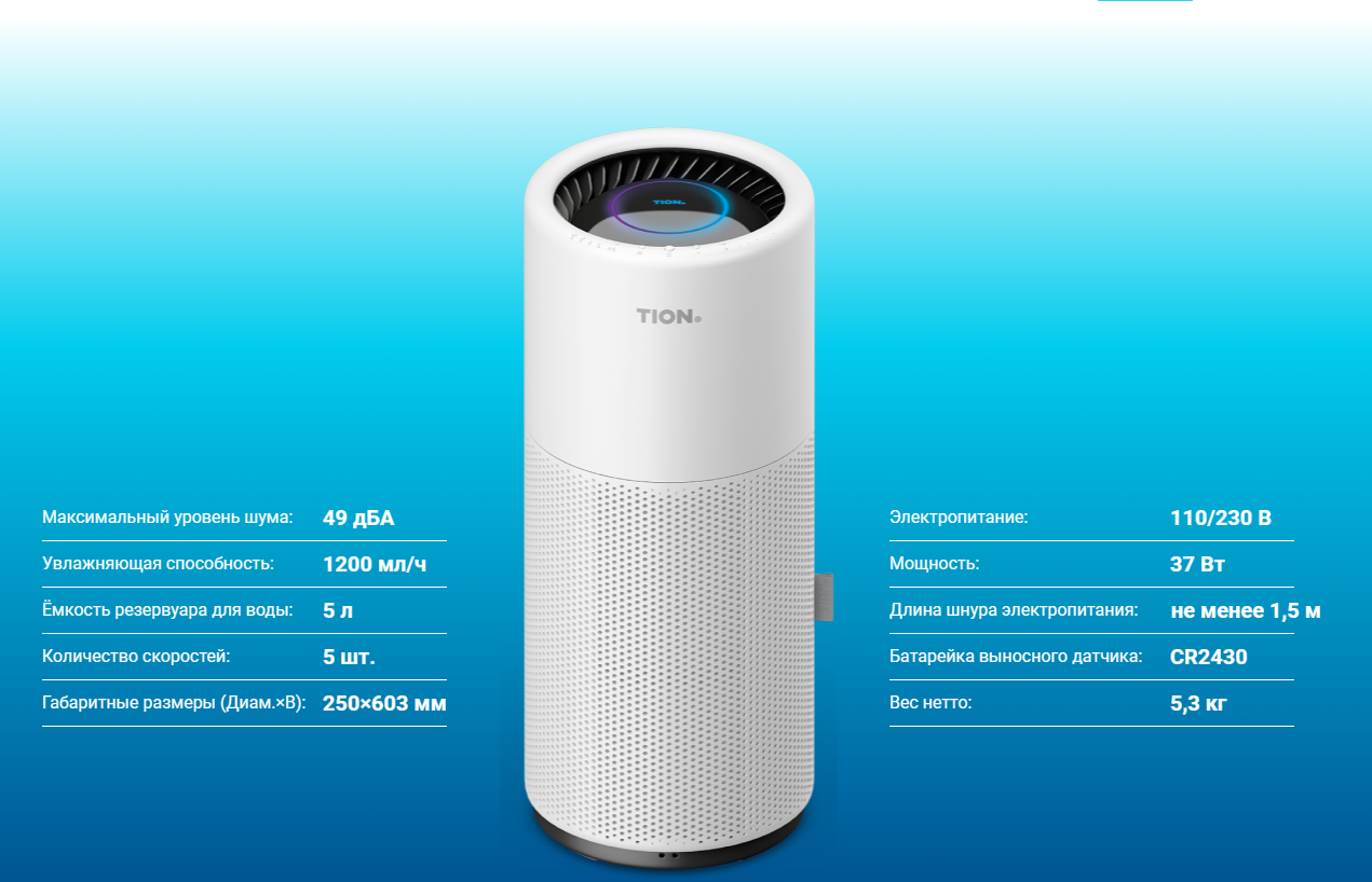 Благодаря сенсору движения подсветка включается, когда человек находится рядом с увлажнителем, и гаснет, когда пользователь отходит от прибора.