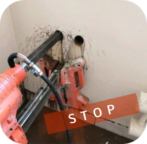 Используем ТОЛЬКО технологию «СУХОГО» бурения, которая позволяет нам проводить работы на чистовом ремонте НЕ ИСПОЛЬЗУЯ - ОКЛЕЙКУ СТЕНЫ ПЛЕНКОЙ.