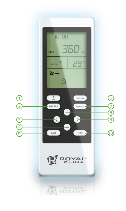 Пульт дистанционного управления позволяет быстро изменять рабочие параметры приточно-очистительного комплекса. С его помощью вы можете регулировать температуру воздуха, скорость вентилятора, выбирать режим работы и устанавливать таймер. Пульт имеет оптимальные размеры и удобно лежит в руке, а на широком дисплее отображаются все рабочие параметры.