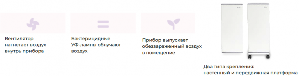 *Применение ультрафиолетовых рециркуляторов рекомендовано Роспотребнадзором для обеззараживания воздуха в помещениях [Письмо Роспотребнадзора от 10 марта 2020г № 02/3853-2020-27 о мерах по профилактике новой короновирусной инфекции COVID- 19].