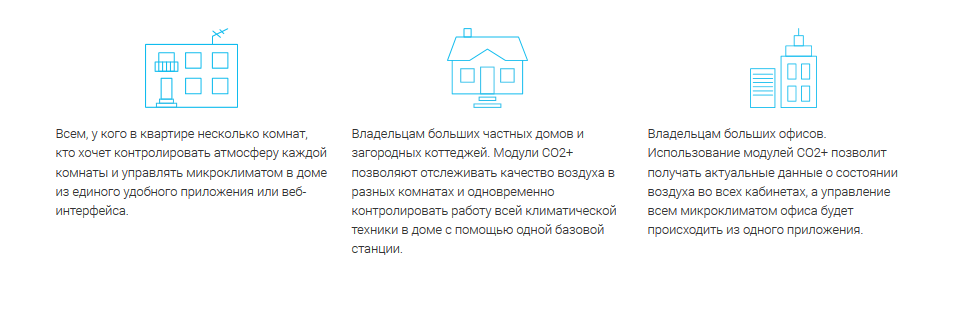 Модуль CO2+ наиболее актуален для тех, у кого много помещений в рамках одного объекта, — многокомнатные квартиры, дома или офисы. Его использование позволяет полностью отказаться от ручной настройки бризеров, что значительно экономит время и обеспечивает автоматическое поддержание выбранных Вами параметров.