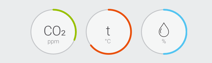 - Измеряет уровень углекислого газа, влажность и температуру воздуха