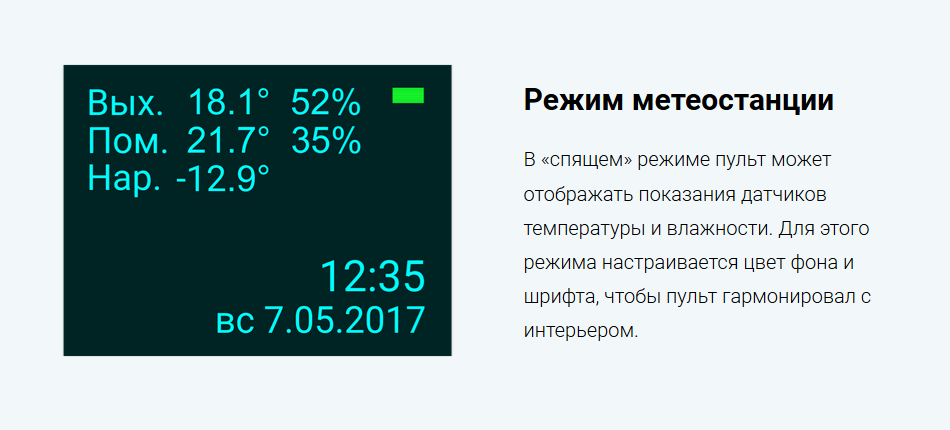 ✔ Все настройки выполняются с пульта управления.