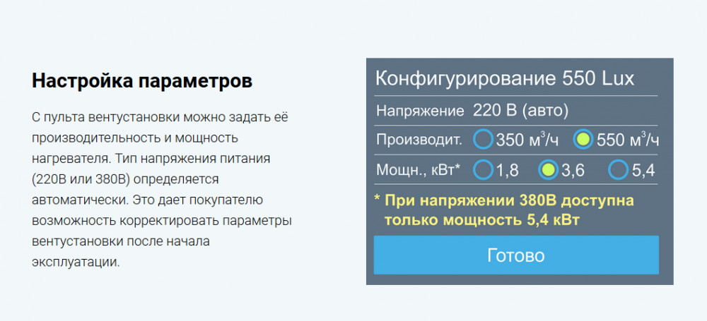 ✔ Настраиваемая производительность 350 или 550 м3/ч.