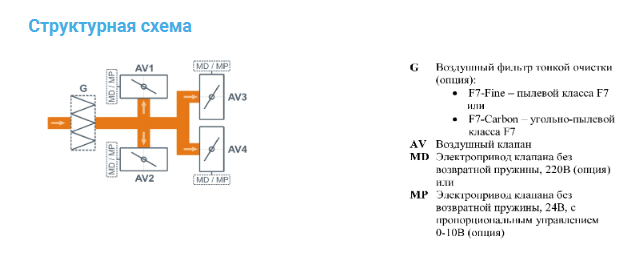 Воздухораспределительная камера для VAV-систем с воздушными клапанами и портом дляизмерения давления, может комплектоваться фильтром тонкой очистки. Клапаны могуткомплектоваться дискретными или пропорциональными электроприводами.